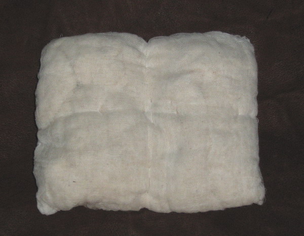 Для дополнительного демпфирования колонок сшил из двухслойной марли по два мешочка для каждой колонки размером примерно 27х25 см и неплотно наполнил их ватой. Получились такие подушки.