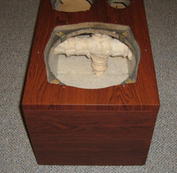 Распорки в корпусах обмотал полосками ватина из старого дивана. Из него же сшил чехольчики для стаканов среднечастотников и труб фазоинверторов.