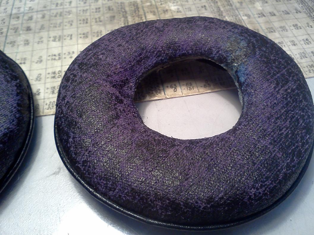 Вот и крутится мысль восстановить полностью именно родные амбушюры. Поролон я в них уже вставил через разрез снизу, по комфорту претензий уже нет. Но слез кожзам и обнажилась ткань, которая сильно глушит бас.