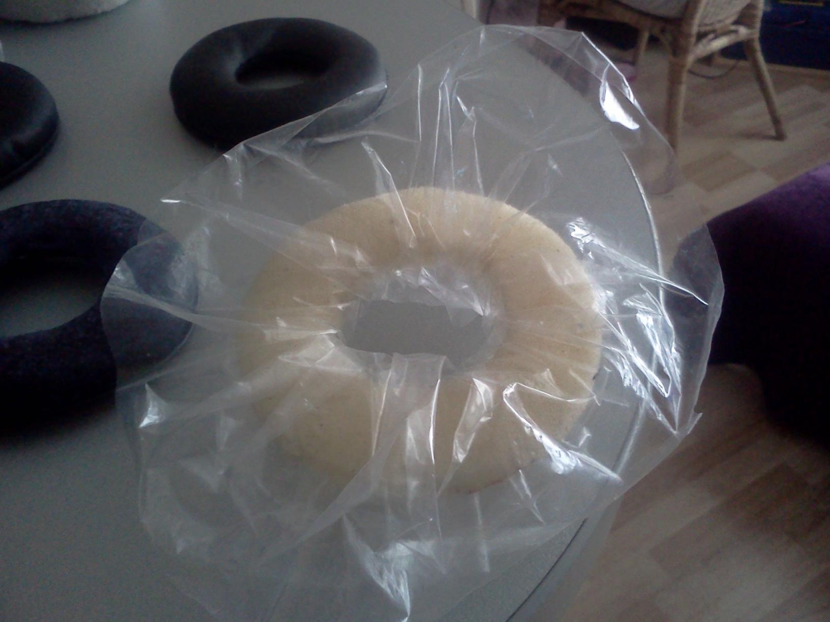 Вобщем амбушюры сделаны из плотного поролона в виде бублика (стояли на гарнитуре Sven CD-830, обтянутые дермантином, в живом виде звучали ужасно), обернутого целофаном. Пока все сделано очень вульгарно, но видимо придется покупать пару черных пакетиков и делать что-то поприличнее, потому что звук очень нравится.