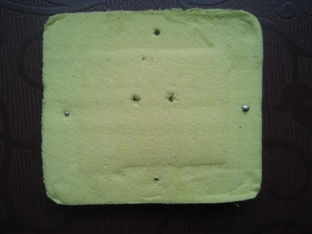 Сзади поставил решетку, вырезанную из автомобильной колонки Ямаха. Дополнительный демпфер сделал из желтой хозяйственной губки.В ней сделаны два отверстия приблизительно по 3 мм напротив центральных щелей магнитов. Демпфирование производилось на слух , после установки амбушюров. Естественно можно сделать любое. Стыки между фм промазаны сп. Третие концы косичек проводов закреплены саморезами. Решетки то же закреплены саморезами.