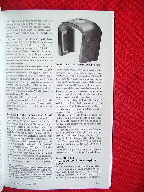 Скриншот журнала 80х с ценой на Jecklin Float Model 2 и Jecklin Float Electrostatic. Ну и фото для коллекции.