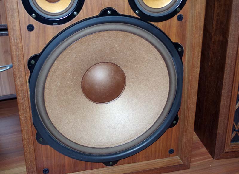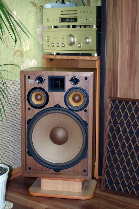 Характеристики: 5 полос, чувствительность 97 dB/W/m, мощность 100 ватт, 8 ом, частотный диапазон - 25 до 22 000 Гц, НЧ динамик 38 см ( "FB" целлюлозный материал профессионального подразделения TAD фирмы Pioneer, шелковые подвесы), СЧ = 12 см, СЧ/ВЧ = 10 см, твитер (Tweeter) - PT - 410F-1, супер твитер (Super tweeter) в каждой колонке по два - 1,3 см - DS-6. Все динамики в прекрасном состоянии.