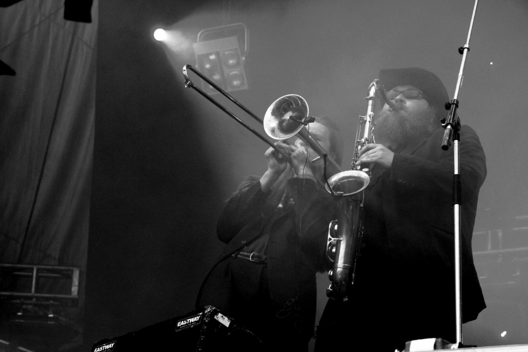 Отказавшись от гитар, как основного инструмента, группа исполняет музыку на таких инструментах, как pump organ, saxophone, и distorted cello. Как основной ритм группа использует ускоренныe традиционные polka и bossa nova с добавлением примитивных ударных.