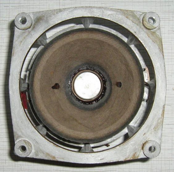 Накладка высокочастотной головки удерживает саму головку и если открутить все ее винты, драгоценная 10 ГИ-1 может просто с грохотом провалиться в колонку и получить ушибы или чего хуже. Эту накладку нужно откручивать в последнюю очередь, после демонтажа низкочастотного динамика, просунув руку во внутрь корпуса и поддерживая головку.