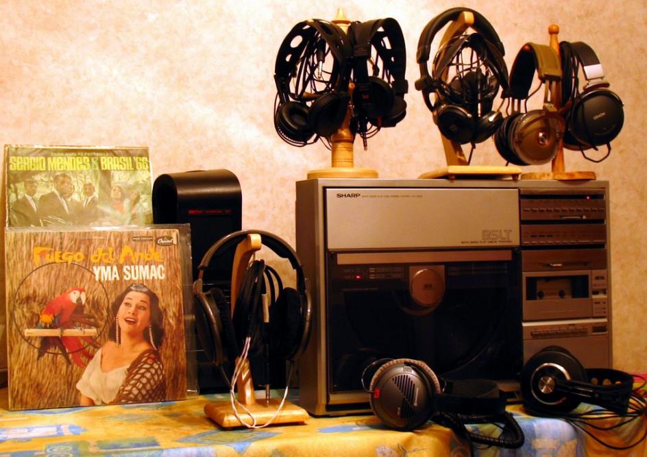 Или через виниловый проигрыватель Sharp VZ-3500 - это девайс "шесть в одном флаконе", включая усилитель для наушников. Поэтому любые винтажные наушники можно подключать к Шарпу напрямую - я предпочитаю цепь в аудио-системе покороче, с минимумом внешних устройств. Каждое новое устройство в цепи означает дополнительные вопросы для решения: сочетаемость с другими компонентами системы по звуку, питание, соединение кабелями, вибро- и электро-изоляция и прочее и прочее. Поэтому чем меньше устройств, тем лучше. Там, где в системе несколько устройств, значит, что короче решения не нашлось.