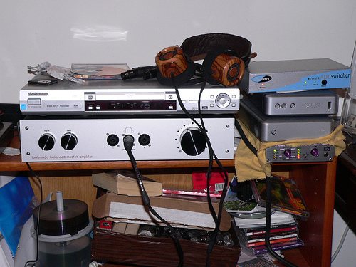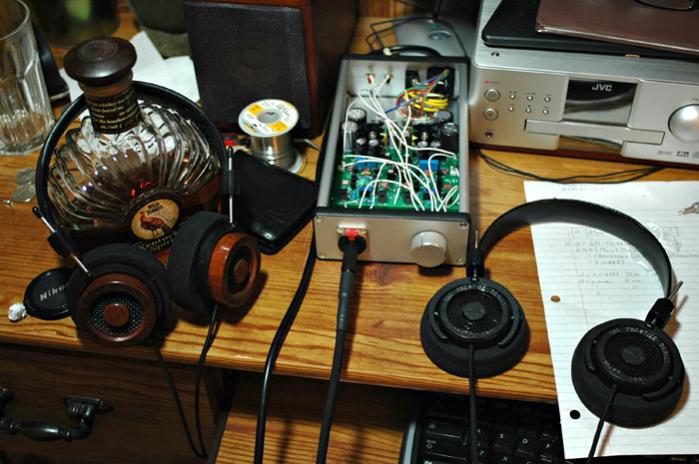 Комплект самодельной акустики, состоящей из динамиков наушников Grado: