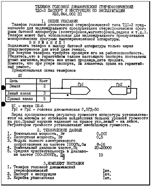 Также привожу ниже данные по модели. Напоминаю, что темы по советским наушникам на форуме активно просматривают наши друзья по хобби из США и Европы, которые пользуются переводчиком Гугла.