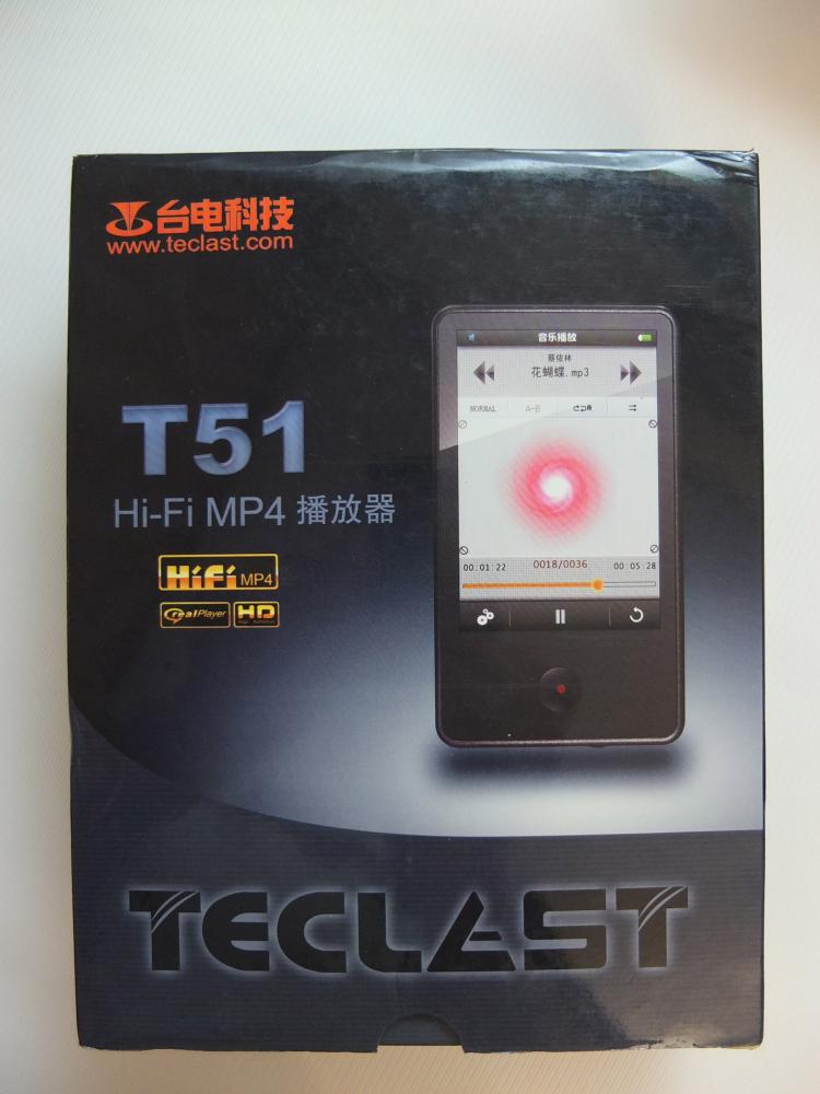 В нём применяются качественные аудиокомпоненты, что позволяет ему воспроизводить музыку лучше подавляющего большинства современных плееров - изначально производитель позиционировал Teclast T51 как «аудиофильский» плеер. Плеер работает стабильно, на экране плёнка. Интерфейс на английском языке (плеер в Россию не поставлялся), воспроизводит форматы аудио: WAV,FLAC,APE,MP3,OGG,WMA, видео: AVI,FLV,MPG,MP4,DIVX. Корпус из металла.Громкость регулируется колёсиком. Радио нет.