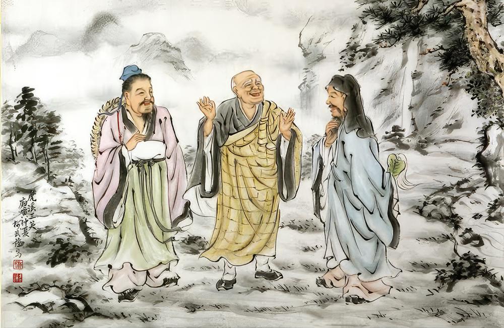 Знаменитый сюжет в китайской живописи - Трое смеются у Тигриного Ручья.