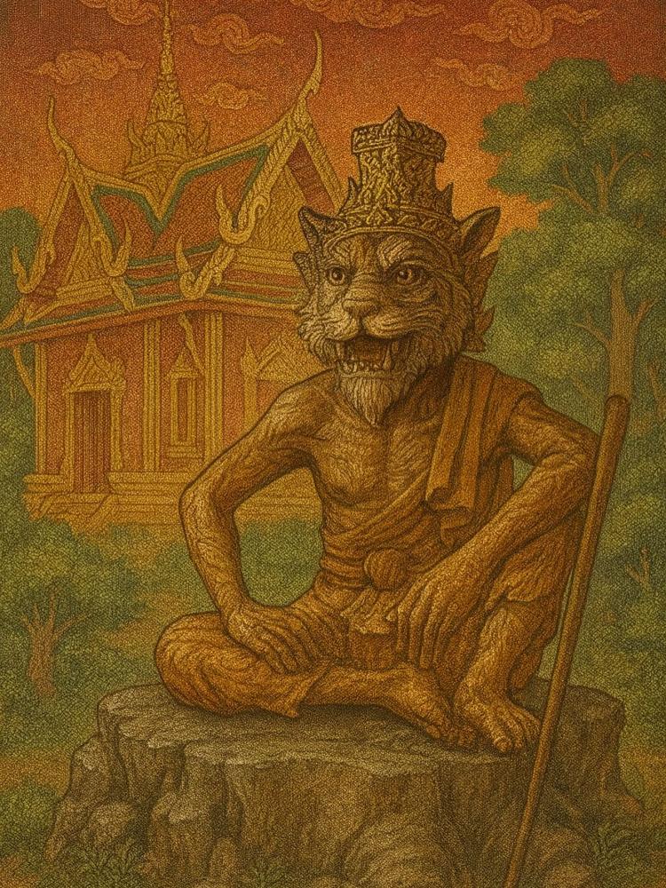 Devotees created amulets and figurines honoring Pu Seur’s dual form—sometimes depicting a human face, sometimes a tiger—especially in the B.E. 2550 (2007) series called “Reusi Loop Lor