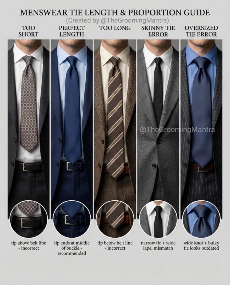 Длина галстука - галстук должен доходить до середины пряжки ремня.