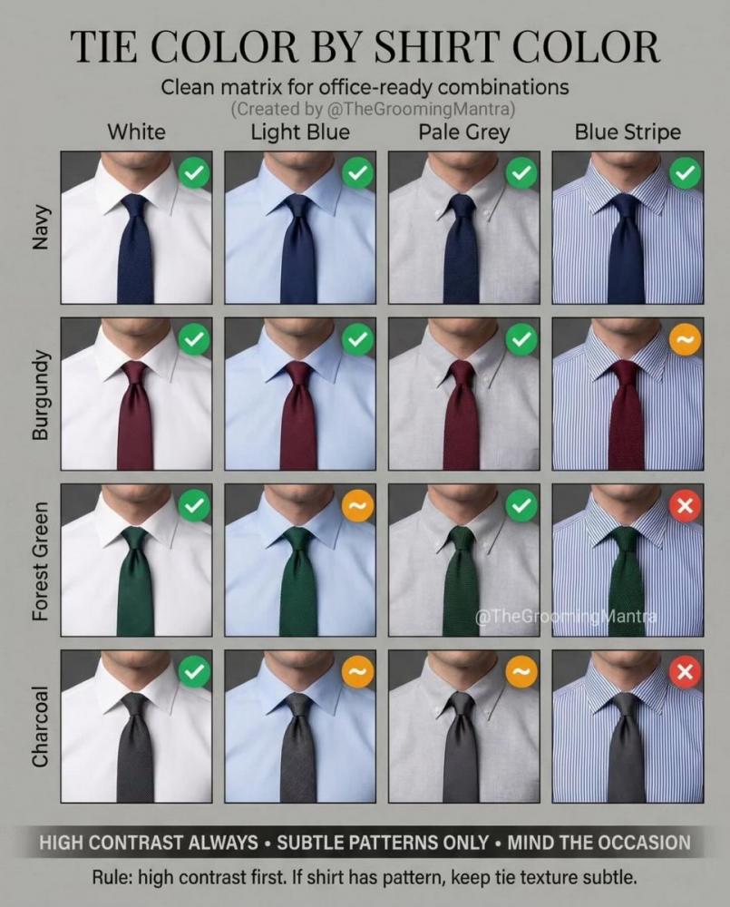 Соответствие цвета галстука и рубашки.