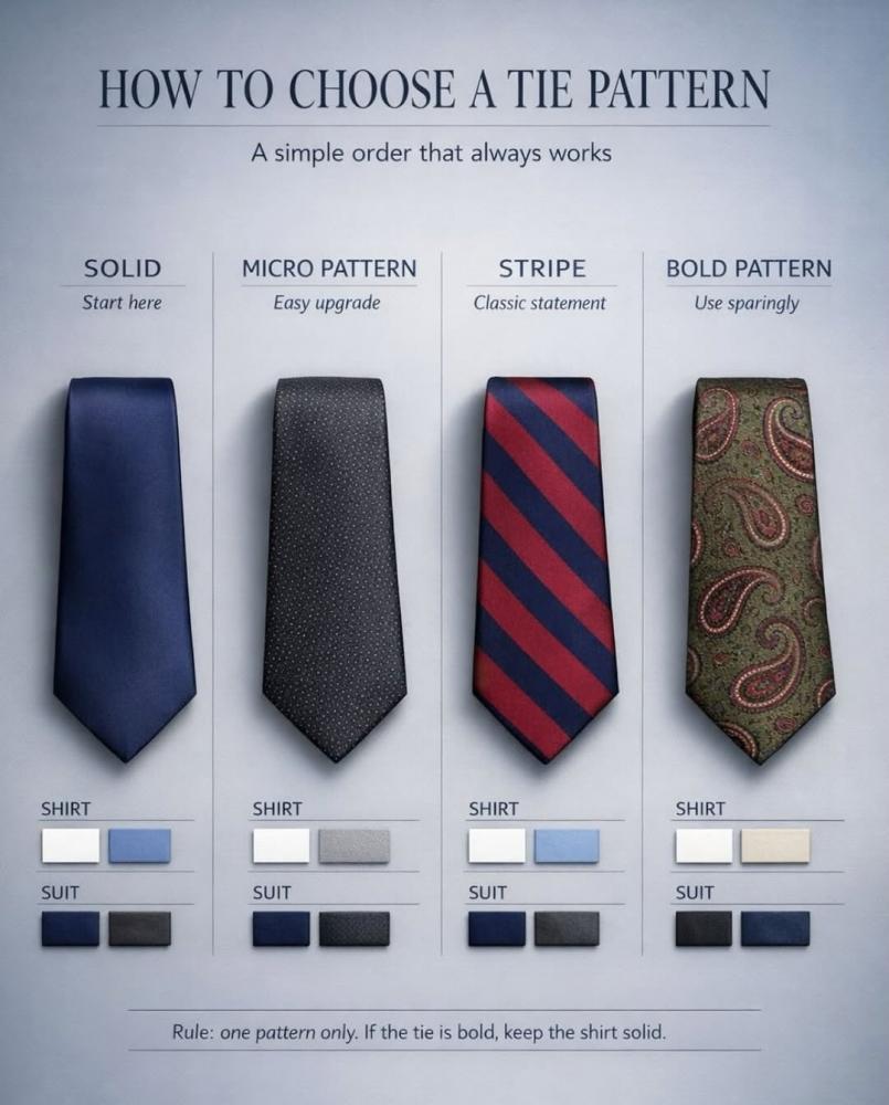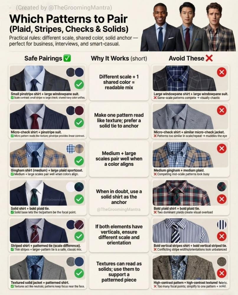 Как сочетать пиджак, рубашку и галстук с рисунком.